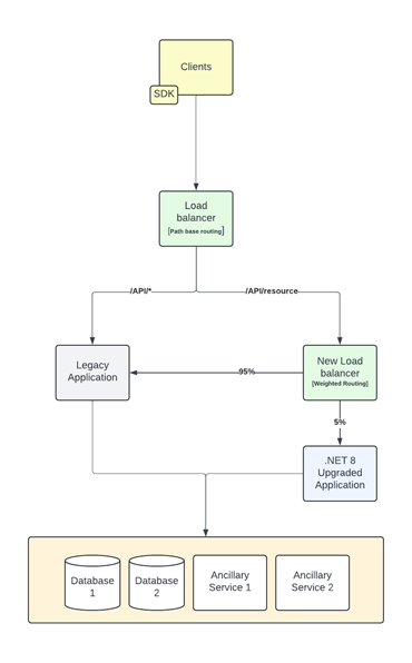 2. Re-purpose existing Servers: With this approach you can initially repurpose few of servers to host application .NET 8 version. As you gain confidence in .NET 8 version, more servers can shift from legacy to upgraded version. In the end all servers will be repurposed to upgraded application version.